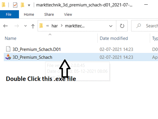 Extract the Zip file, double click the “3D_Premium_Schach.exe” file.