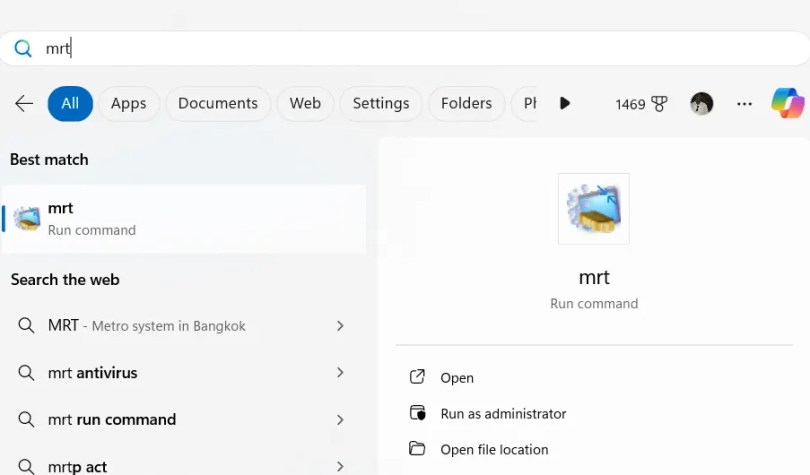 You can find this discreet anti-malware solution by typing “mrt” into the Windows search box.