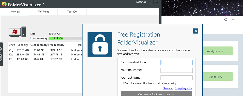 In the “Tools and Helper” section you can notice the “Analyze” function, click it, and unlock Folder Visualizer 7 for free.
