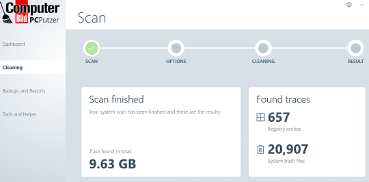 The PC Cleaner or PC-Putzer searches your hard drives for potential trash files.