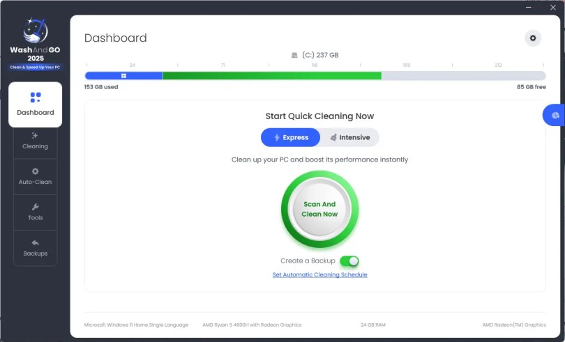 Abelssoft WashAndGo 2025 is a system maintenance tool designed to enhance your Windows system performance. This tool helps keep your PC in optimal working condition by deleting unnecessary files and organizing all the data on your hard disk.