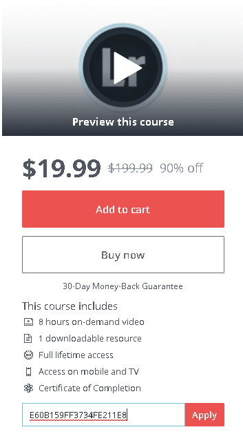We are sharing a coupon code that lets you access “Adobe Lightroom Masterclass – Beginner to Expert” video course for free.