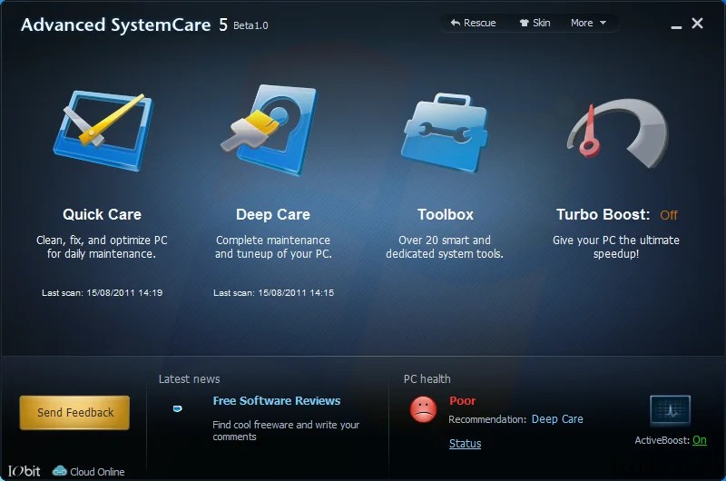 Also Quick and Deep Care is enhanced while the Turbo Boost can recover more system resources than ever and Advanced SystemCare uses new cloud technology to quickly detect and prevent new malware threats.