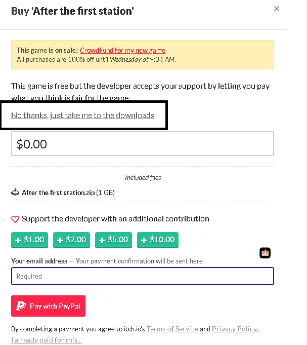 Create an account at itch.io or sign with your login credentials.