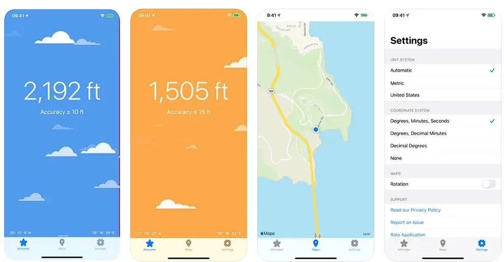 In the App Store, this altimeter has the highest rating possible. It has a remarkably precise display and you can choose from 16 different backgrounds. Anyone who values their privacy will be happy to know that the software does not track or bombard them with advertisements.
