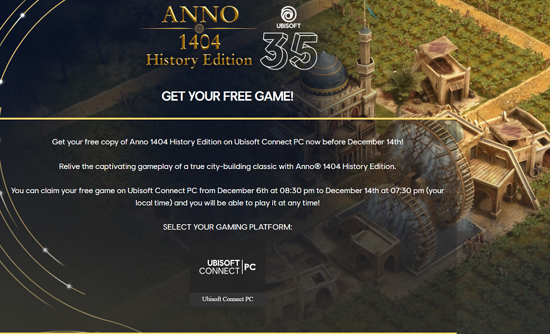 Ubisoft is now giving away a free copy of the Anno 1404 History Edition. The freebie is exclusively available via Ubisoft Connect on the PC platform.