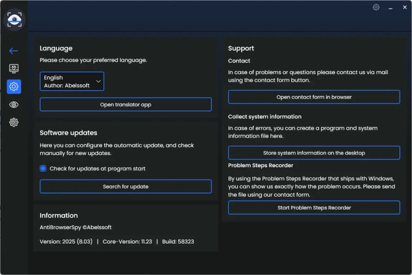 Download the giveaway version of Abelssoft AntiBrowserSpy 2025 v8.0.3 (build 58323) from any of these links: [Link 1/ Link 2 / Link 3]