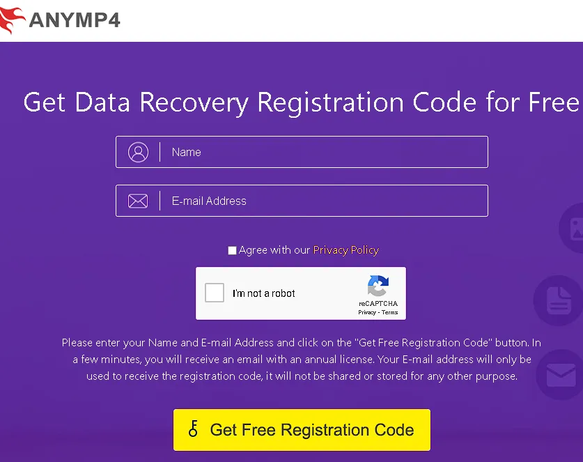 To claim your free registration code, provide your name and email address, accept the conditions of their privacy policy, and solve the reCAPTCHA.