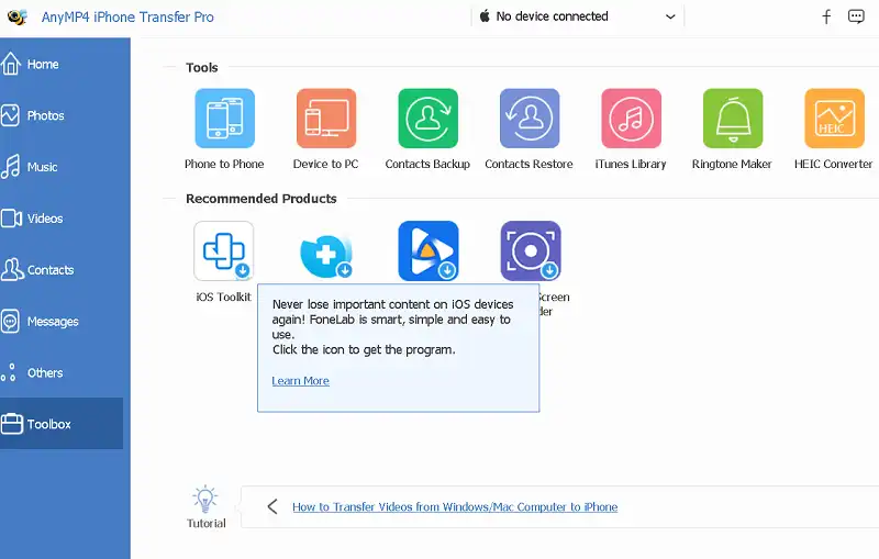 AnyMP4 iPhone Transfer Pro is a simple piece of software that allows you to transfer files between your iPhone and computer.