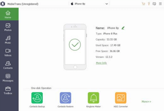 If you buy a new iPhone or Android phone or have more than one iOS device, like an iPhone or iPad, MobieTrans will help you sync your data to another one conveniently. You don’t have to log in with your Apple ID. Just connect your devices to the computer, and MobieTrans will help you move files to another device in one click.