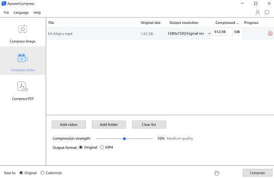 - Can preset the video size before compressing it.