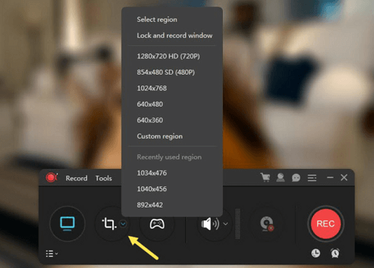 The controller lets you select a region, audio, and webcam that you want to capture in the video.