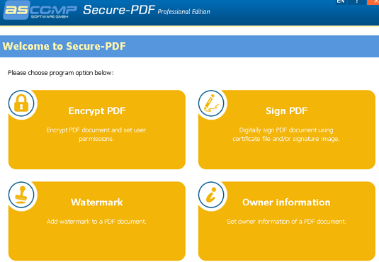 With Secure-PDF, you can set watermarks and the owner’s information for a PDF document.
