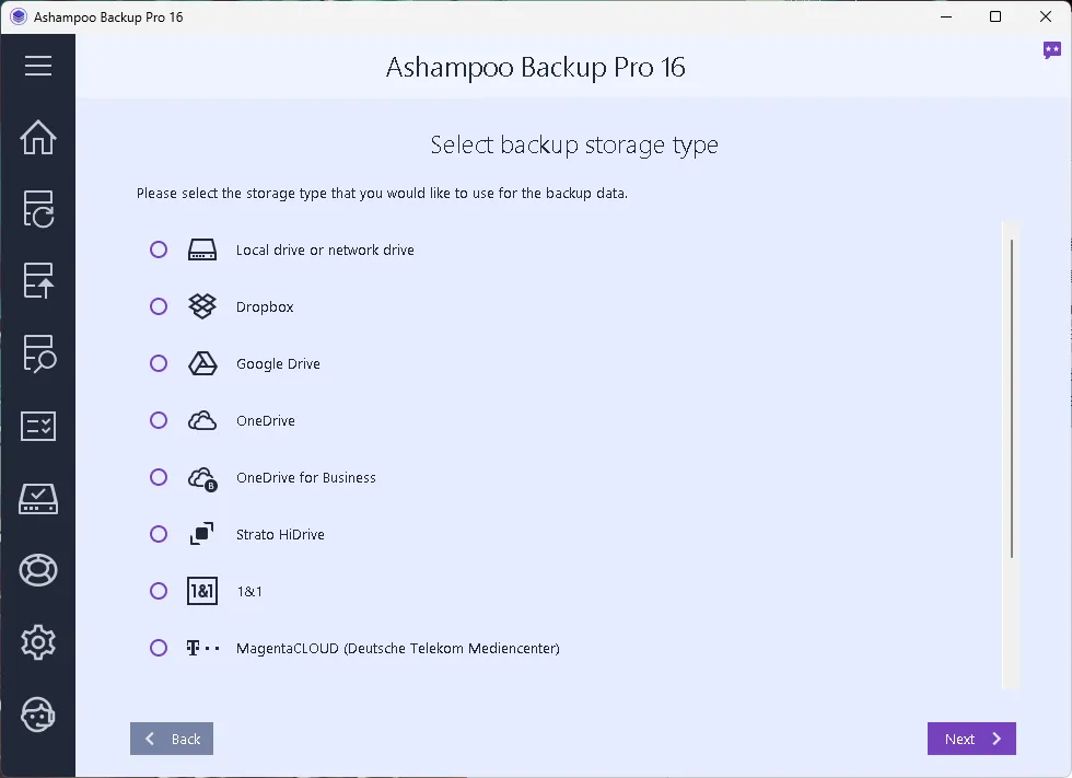 If you’ve yet to find a backup solution that works for you, try Ashampoo Backup. Getting started is easy; just choose what to back up and select a location to store your backup files such as a local hard disk or (NAS) device or removable device, or any cloud service (supports WebDAV ).