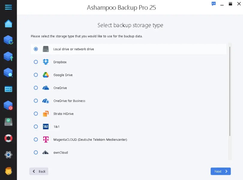 For offering storage options, Ashampoo Backup Pro shines. The software accommodates a variety of storage options, including: