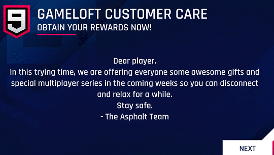 Gameloft has announced that they are offering over €50 worth in-game items of Asphalt 9 game for free. These free unlocks are intended to support people who are in social distancing and self-quarantine due to coronavirus outbreak.