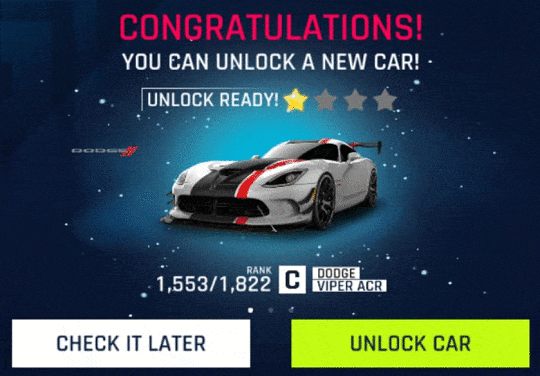 - One Rare card unlocks Class C Dodge Viper Car