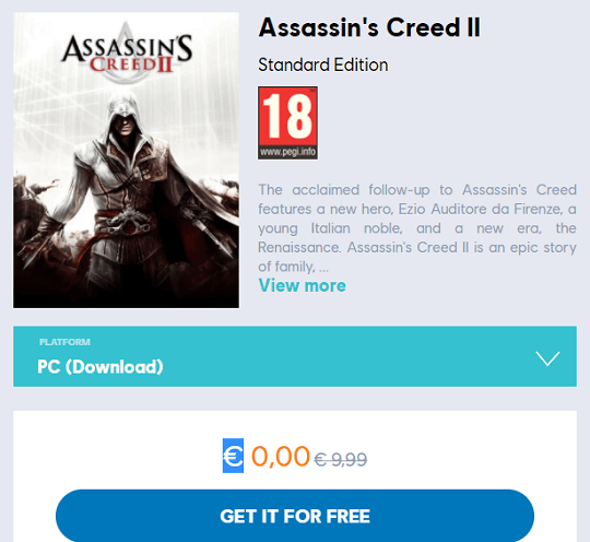 Assassin’s Creed 2 Standard Edition now available as a free download on Ubisoft Store.