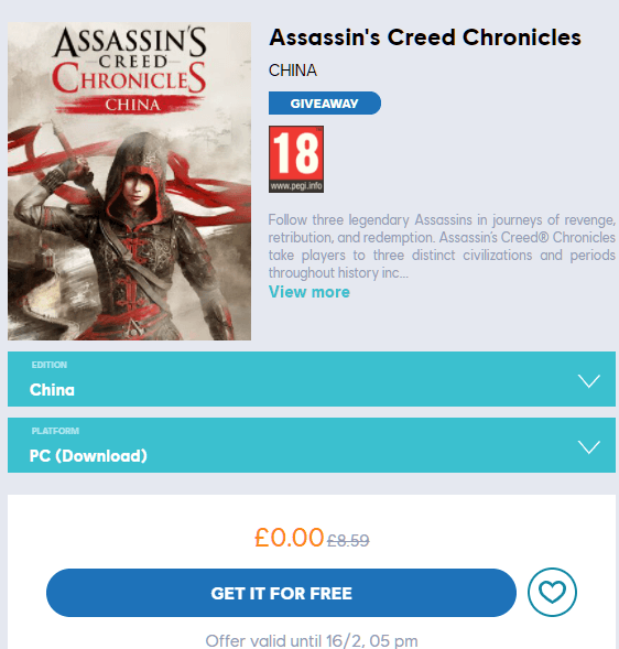 Assassin’s Creed Chronicles: China PC Game now available as a free download via Ubisoft. According to Ubisoft, this giveaway will be available till Feb 16, 2021. So, interested people can grab this £8.59 worth game without any cost.
