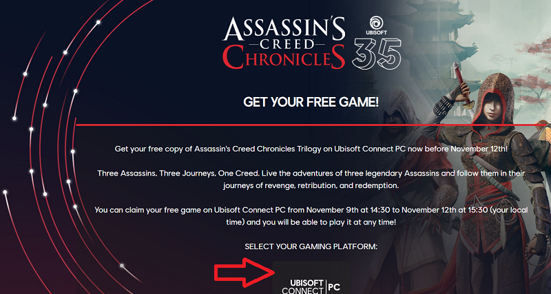 Ubisoft has chosen to give Assassin’s Creed Chronicles Trilogy (value$30) FREE for a limited period to celebrate its 35th anniversary!