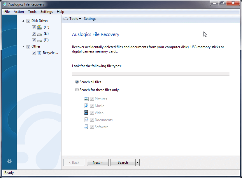 Auslogics File Recovery can not only undelete your files but also help you to recover your computer if it experiences Windows failure. It has s feature that allows you to create disc images, which means that you will never need a separate backup and disaster recovery solution.
