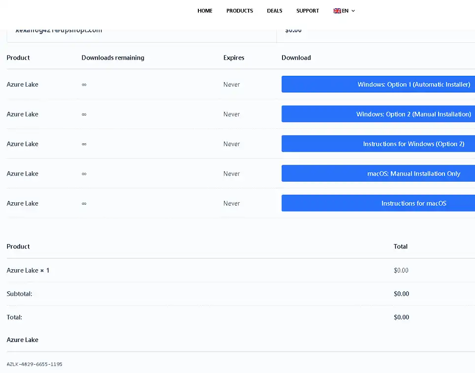 Similar to the screenshot below, the giveaway page will show the serial code and links or instructions to download the software for Windows or macOS.