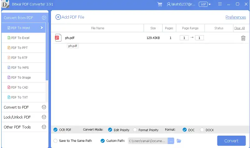 - Batch PDF Conversion: Convert multiple files at once to PDF or vice versa.