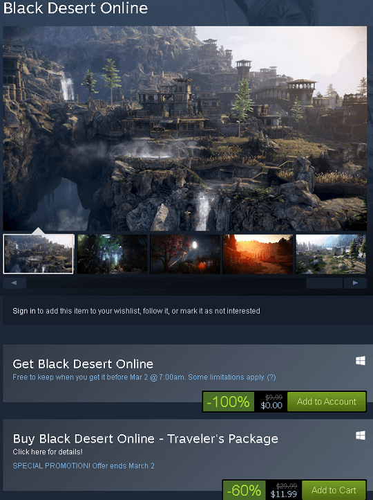 Black Desert Online is one of the most popular MMOG and the remastered version is available for 100% off or free. This is a time-limited deal and available till March 2 (7 am pst).