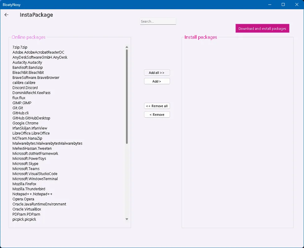 This debloat utility also includes a few helpful extras, such as InstaPackage for installing must-have software with a single click and BloatFinder for uninstalling unused Windows components.