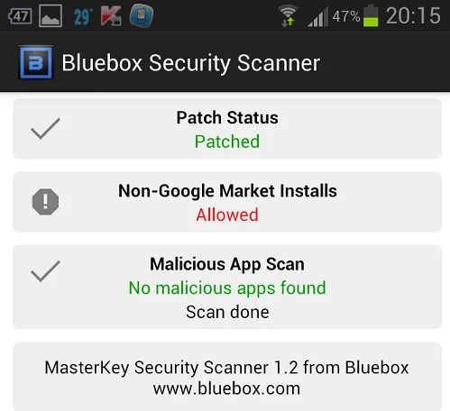 But if you want to know whether your Android device is patched or vulnerable to “Master key” flaw, then you must download Bluebox Security Scanner app, released by the same research team who discovered this security bug.