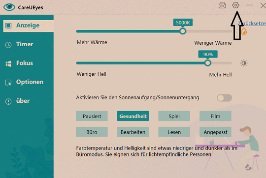 You may use CareUEyes Pro to display break notifications at user-defined intervals and to adjust the color temperature of your screen to make it more comfortable for your eyes.