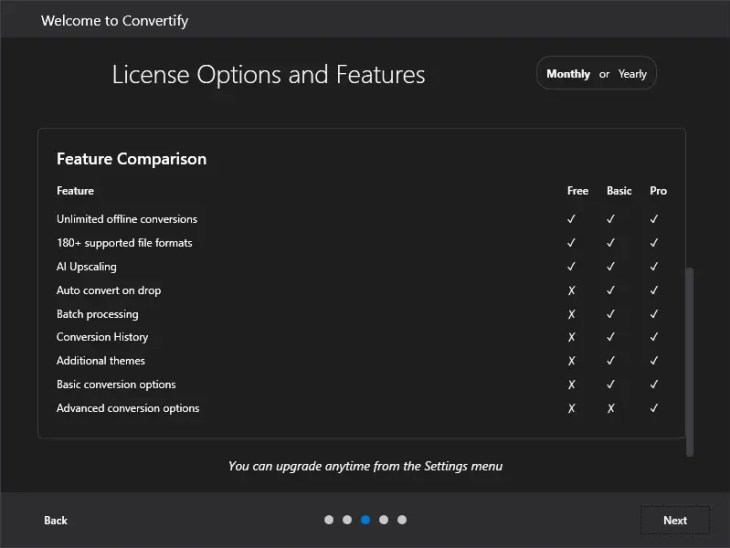 - Basic ($4.99/month): Ideal for occasional professional use, batch processing, keeps track of conversions, adds priority support and early feature access.