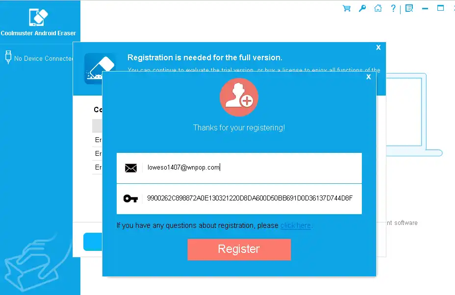 Install the software, open it, click the “Key” icon on the app’s main screen, and then click “Register.”