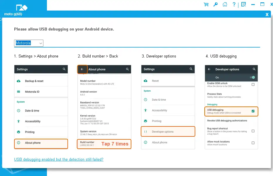 - For the PC to connect, you must turn on USB debugging mode on your Android device.