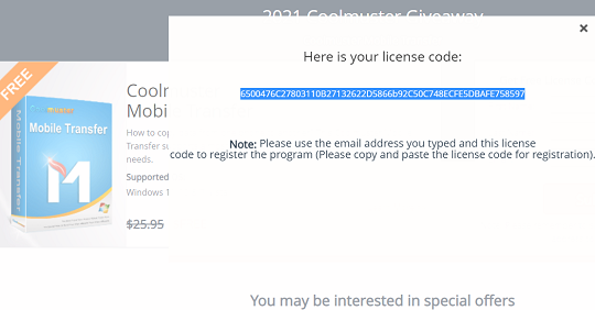 That’s it, you got a 365-day subscription to Coolmuster Mobile Transfer for free.