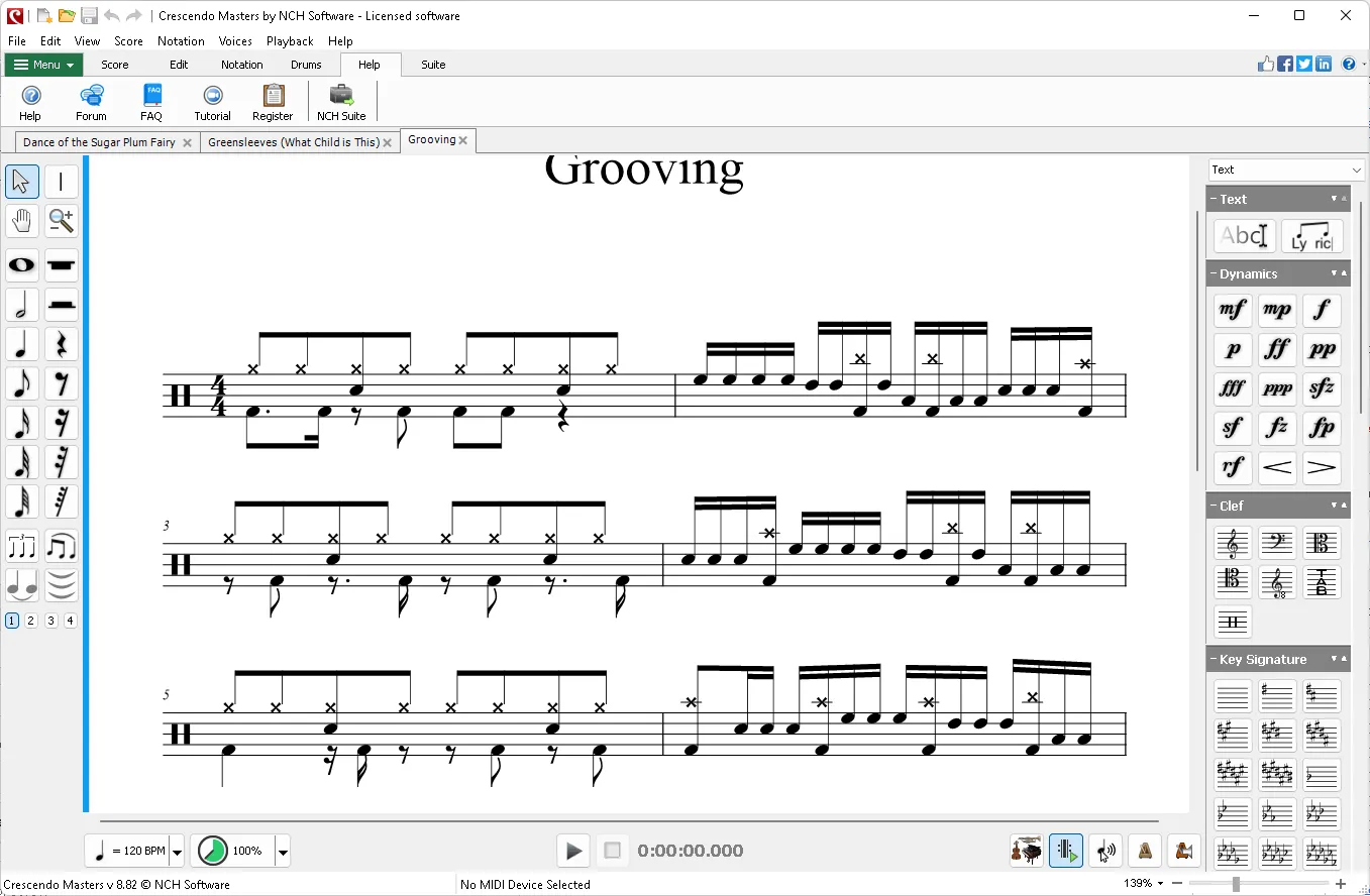 - It’s easy to compose music using standard notation, guitar tabs, or percussion.