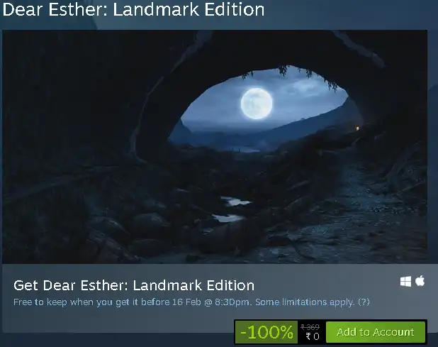 Dear Esther: Landmark Edition is currently free at the Steam store. This is a first-person narrative adventure game about love, grief, remorse, and redemption. It’s an unflinchingly emotional experience, driven by story and immersion rather than traditional mechanics.