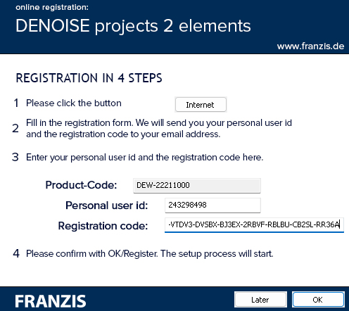 Next, you will receive a second email from Franzis.