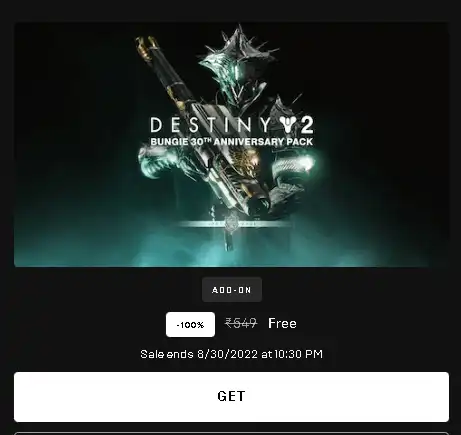 Destiny 2 is now available in the Epic Games Store. To celebrate the release of Destiny 2 on the Epic Games Store (EGS), the Bungie 30th Anniversary Pack, which costs $24.99, is being given away for free.