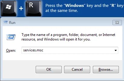 So, to block this service first press the combination “Windows” (start) and “R” keys to open the “Run” menu and enter the command “services.msc”, then hit “OK” button.