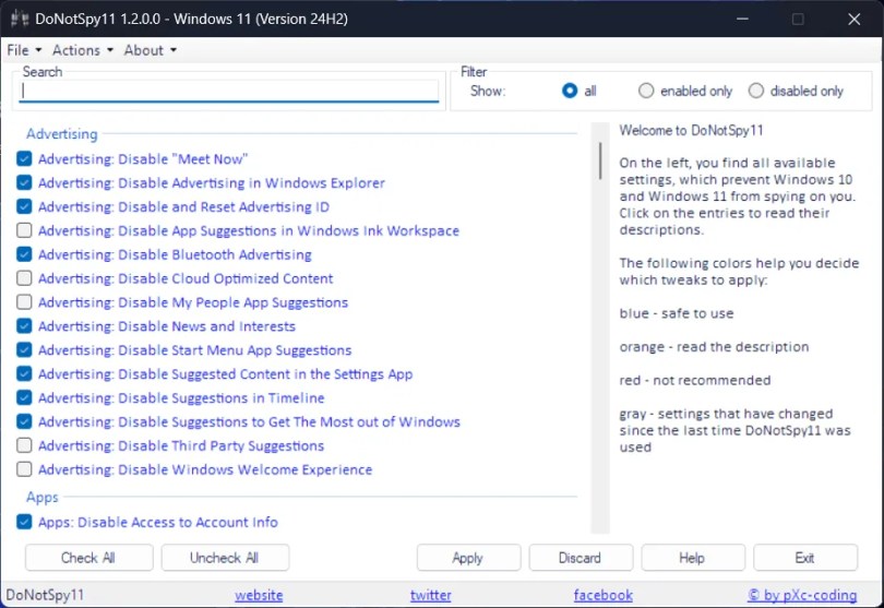DoNotSpy11 gives you greater privacy and control over your Windows 11 settings. This simple and free tool lets you change or turn off Windows 11’s various privacy settings.