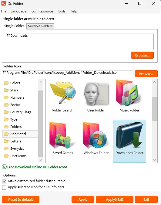 - “Make customized folder distributable” and “Apply selected icon to all subfolders” are two additional folder icon changes.
