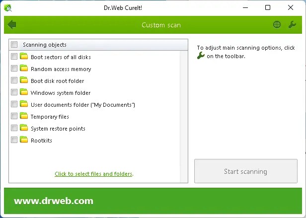 - Customizable Scans: Dr.Web doesn’t require full system scans like other antivirus solutions. Select directories or files to scan using express, full, or custom scans. If you suspect malware is in a specific area of your system, this function will save you time and energy.