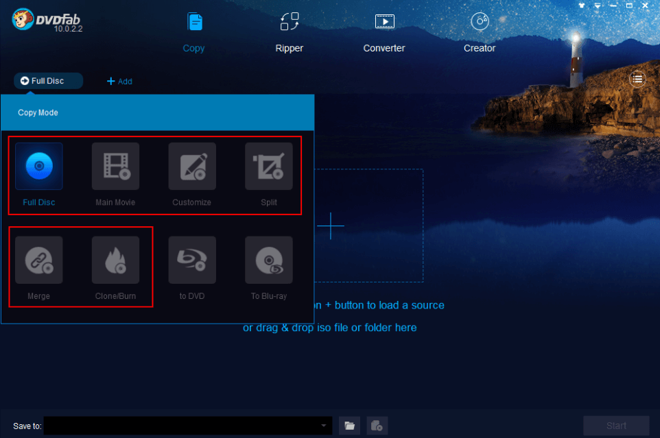 Under the Copy module, there are six copy modes (Full Disc, Main Movie, Customize, Split, Merge, and Clone/Burn) for you to choose to satisfy all kinds of demands.