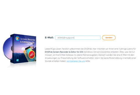 Simply visit this Promo page in german language, enter your email address and hit ‘Senden’ button to receive license code, to safeguard your privacy you can enter temporary email address such as 10 Minute mail.