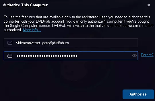 Install and launch the DVDFab 12 app, click the “Authorize” button.
