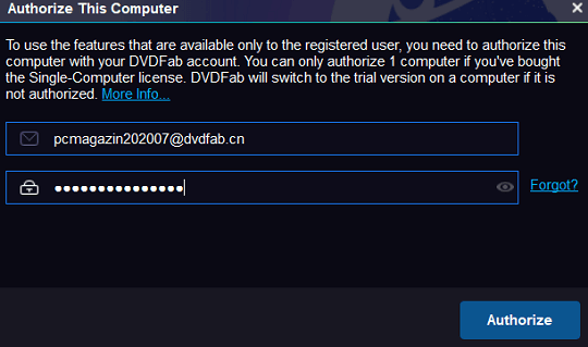 Run the installer, enter the activation information, and hit the “authorize” button.