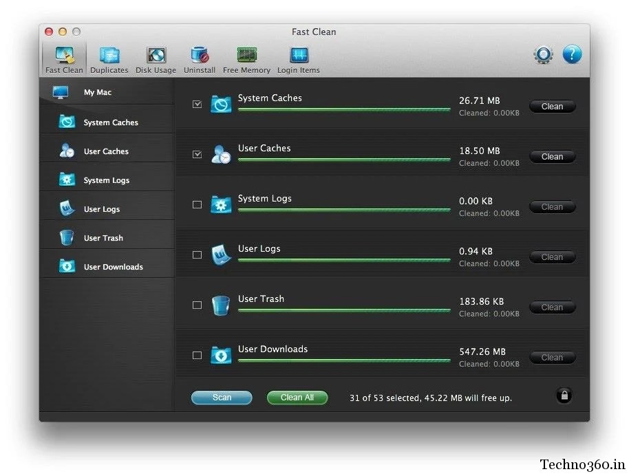 CleanGenius 3.0 integrates with all the features of EaseUS CleanGenius 2.0 like removing system junk files including Caches, Logs, User Downloads, Trash, Safari Internet Caches, etc., monitoring disk space, alerting you when the disk space is running low,app uninstaller and ejecting the mounted drives safely.