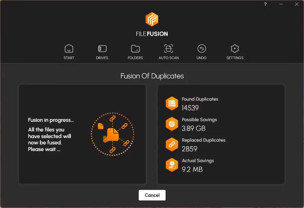 - Uses a smart algorithm that looks for duplicate files by comparing file names and content.