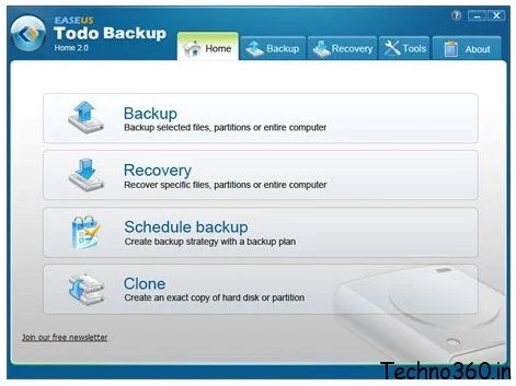 Installing & using of the software is breeze, the UI is user-friendly especially it is very help to novice users.The main screen highlights the backup, recovery, Schedule backup and clone disk options.It also supports sector-by-sector copying, compression, spanning, and encryption. So with Todo Backup you can back up only preferred drives or entire Hard-disk by creating an image of the entire data or the whole partition (sector-by-sector imaging).